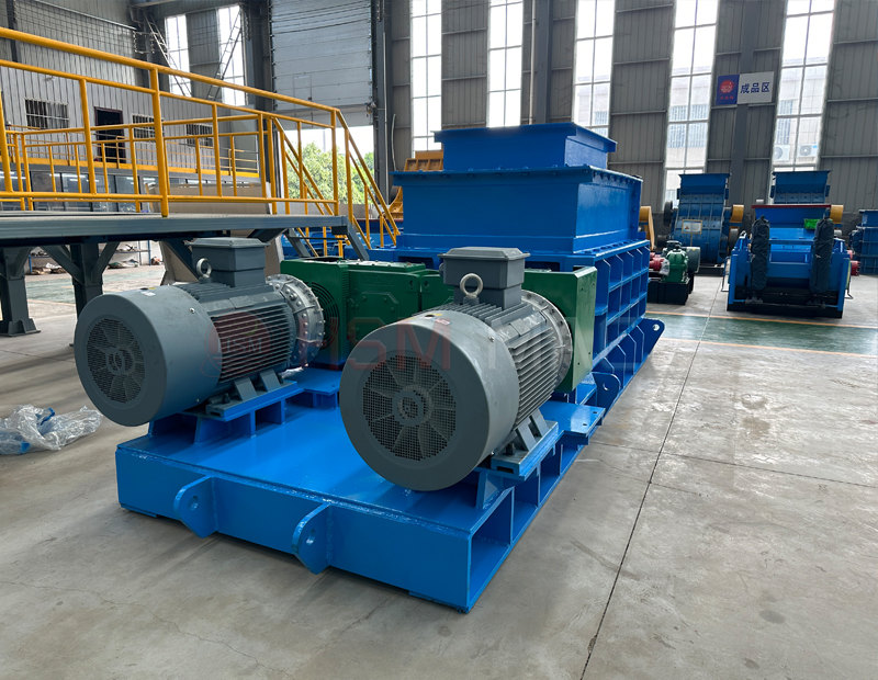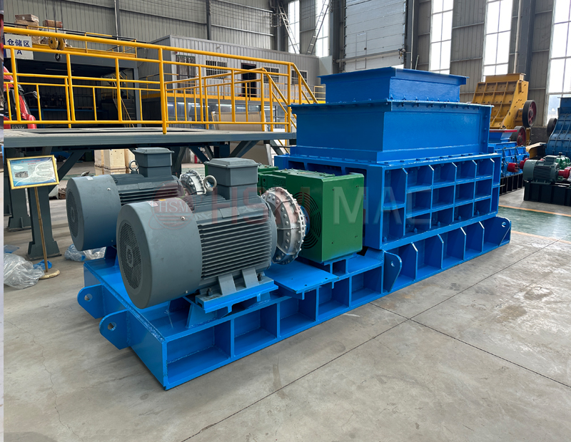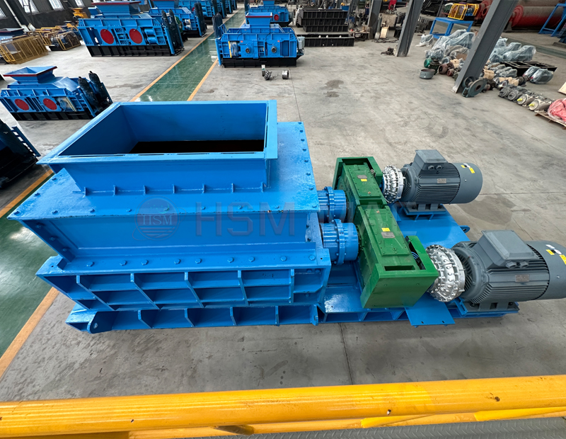 分級式齒輥破碎機由兩臺電動機將動力經(jīng)減速器減速后分別驅(qū)動兩平行安裝的齒輥相向旋轉(zhuǎn),當物料落入分級破碎機雙輥之間時,帶有螺旋齒牙或刀形齒板首先將物料篩分,小于排料粒度的顆粒直接通過而不需要破碎,進入排料溜槽,在垂直應(yīng)力或剪切力的共同作用下,大塊物料受齒輥齒牙的劈裂、剪切,拉伸被破碎,從排料口排出。